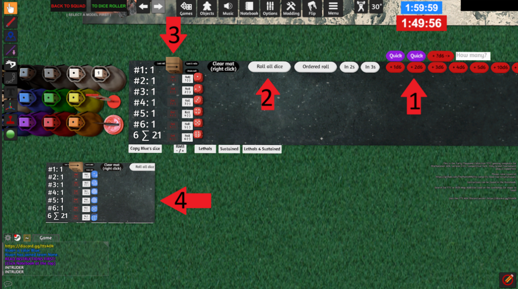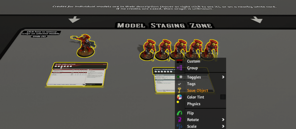 Z těchto modelů si následně sestavíte armádu, jako byste to dělali ve fyzickém světě. Roster si musíte připravit bokem, podle pravidel domluvy s protihráčem a aktuálního bodového balance. Zde už si jen sbíráme modely a připravujeme si je – ideálně v prostoru pojmenovaném “MODEL STAGING ZONE”.