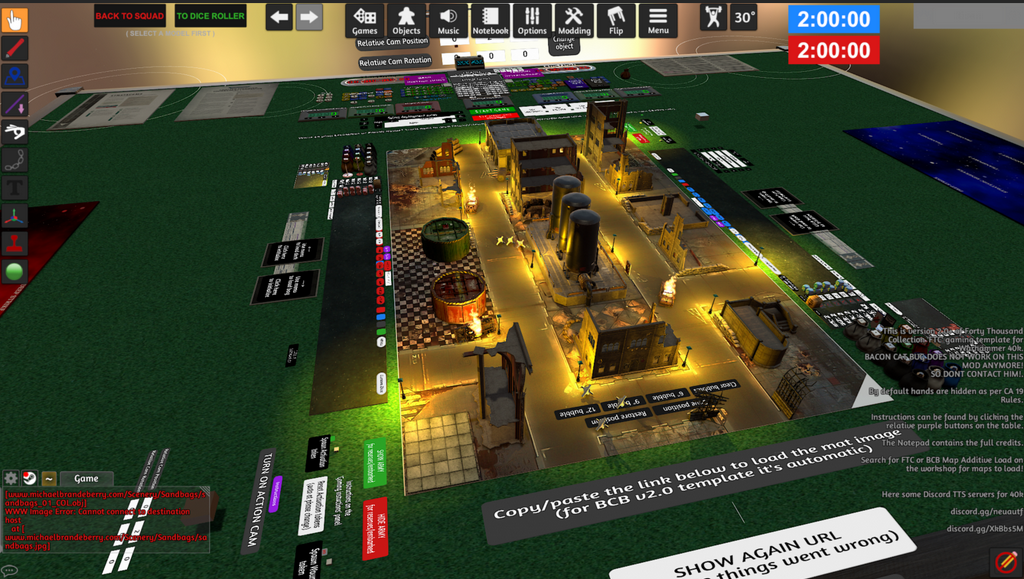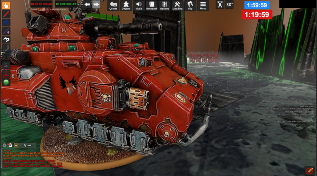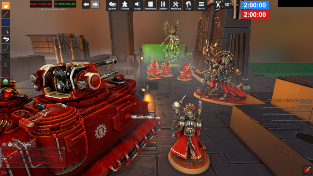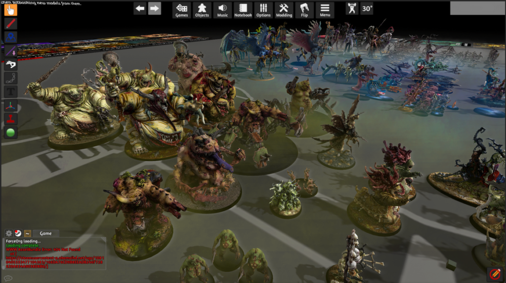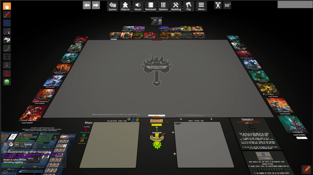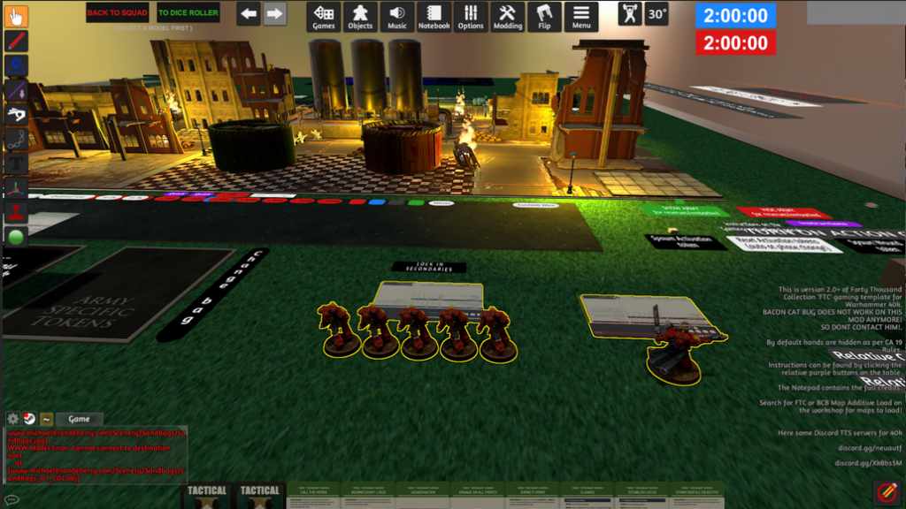 - Budete potřebovat stůl, na kterém budete hrát – k tomu budete potřebovat zdarma stažitelný přídavek s názvem FTC Competitive 40k Map Base (nebo alternativní nástroj), který je ke stažení zdarma v rámci Steam Workshop ke hře (https://steamcommunity.com/sharedfiles/filedetails/?id=2716384879)