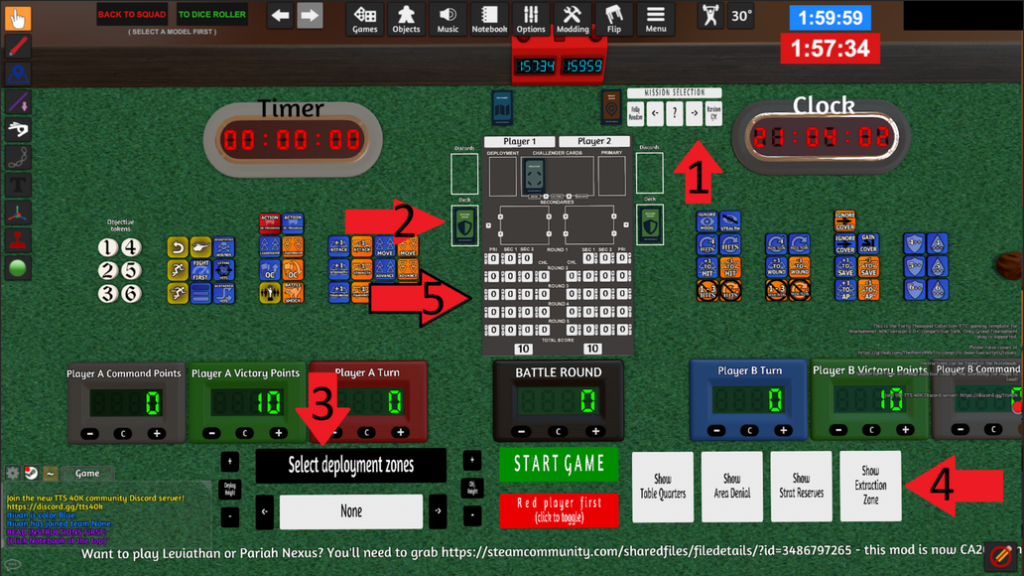 Pro hraní hry potřebujete jako v klasické hře celou řadu údajů – jaký je deployment, jaká je primární mise, jaké jsou sekundární mise, jaké je kolo atd. To vše je součástí stolu a naleznete to zde: