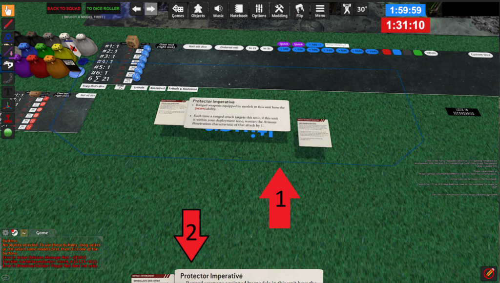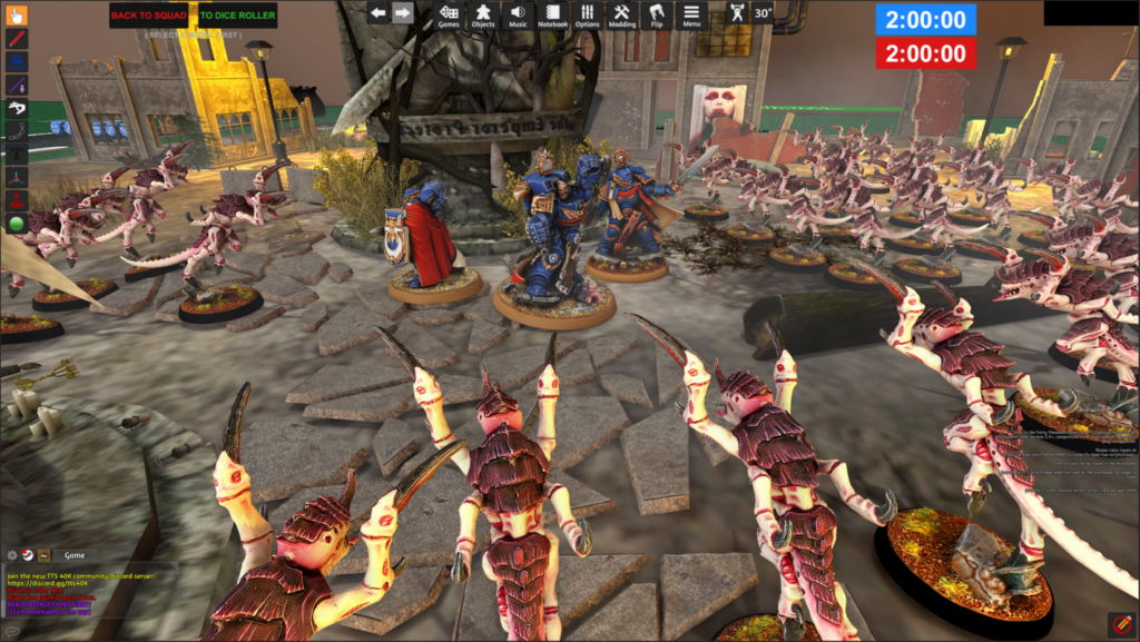 Hra je tímto připravená a můžeme začít. I pokud jste zkušený hráč Warhammer 40,000, zvolte si pro svou první hru v Tabletop Simulátoru menší formát, než je klasických 2000 bodů. Ideálním formátem pro první hru je Combat Patrola, nebo na hra 700, 1000 nebo maximálně 1250 bodů. Nebo si připravte podstatně více času.